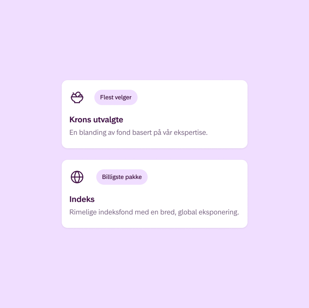 Velg en anbefalt fondspakke eller få en anbefaling når du plukker dine favoritter i fondslisten.
